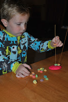 The Fruit Loop Abacus is a great way to practice color sorting, counting, addition, subtraction (and snacking!) This would also work well with Cheerios and other circular, hole-y treats.