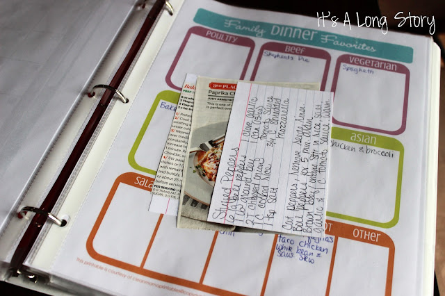Make sure you know where the recipe for each night is, if there is one. On Pinterest I start a board for the month with any online recipes. Cook books get noted on my recipe calendar, and recipe cards get stored in a plastic sleeve behind my recipe calendar in a binder.